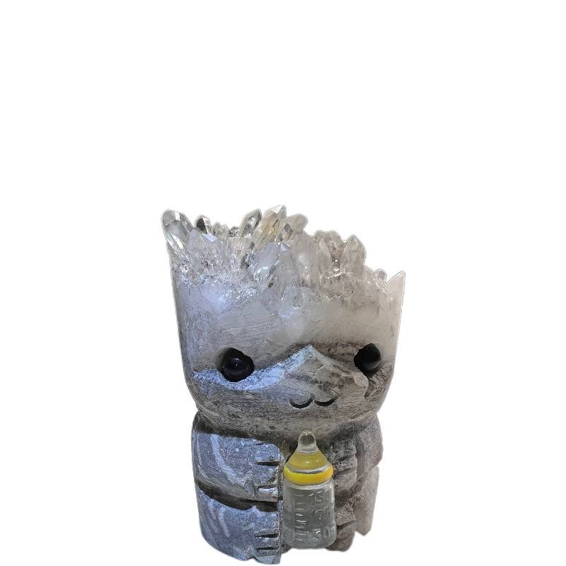 Natural Crystal Cluster Engraved Groot Doll Crystal Stone Ent Cartoon Character