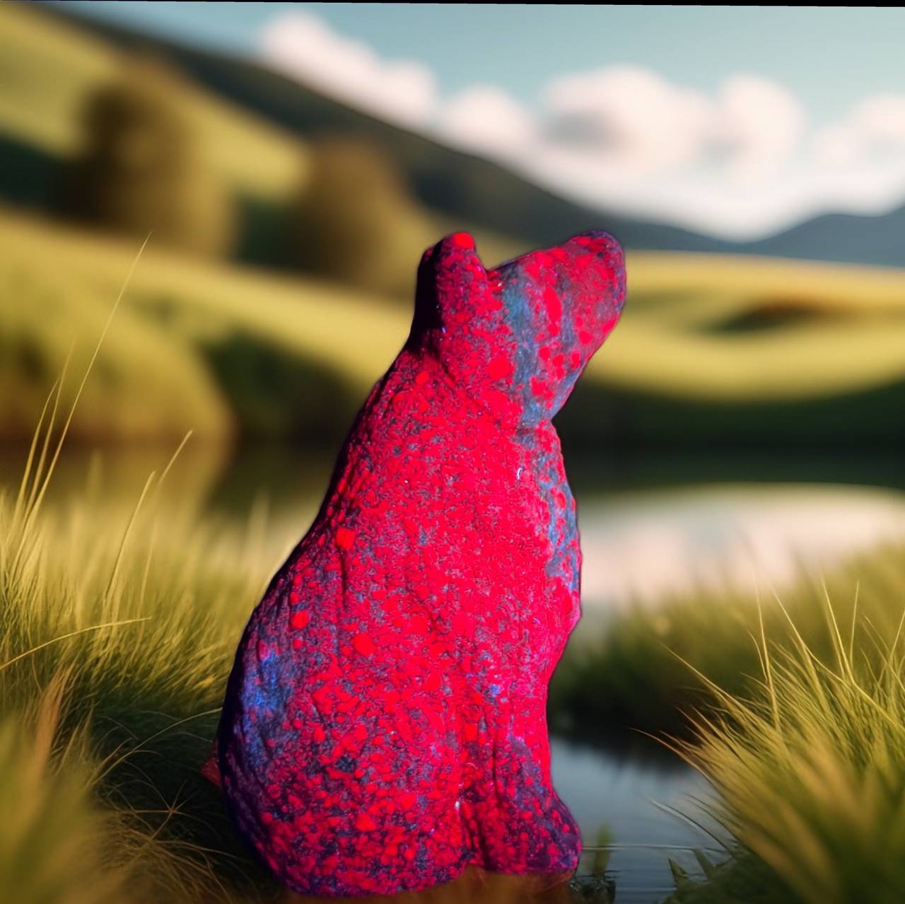 The Red Wolfhound boasts a coat of fiery red fur, reminiscent of the flames of passion and courage. Its intense gaze reflects its fiery spirit and unwavering determination, making it a formidable presence in any setting.