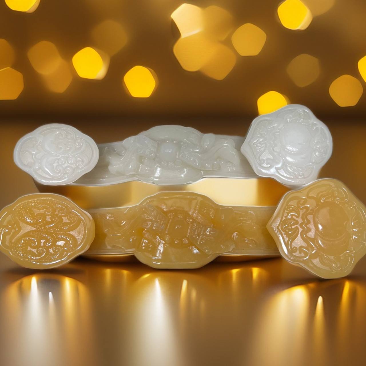 The fine carving on the jade surface depicts auspicious motifs such as intricate floral patterns, auspicious symbols, or mythical creatures, each imbued with its own symbolic significance. These motifs are expertly carved with precision and skill, creating a mesmerizing tapestry of intricate detail that captures the imagination.